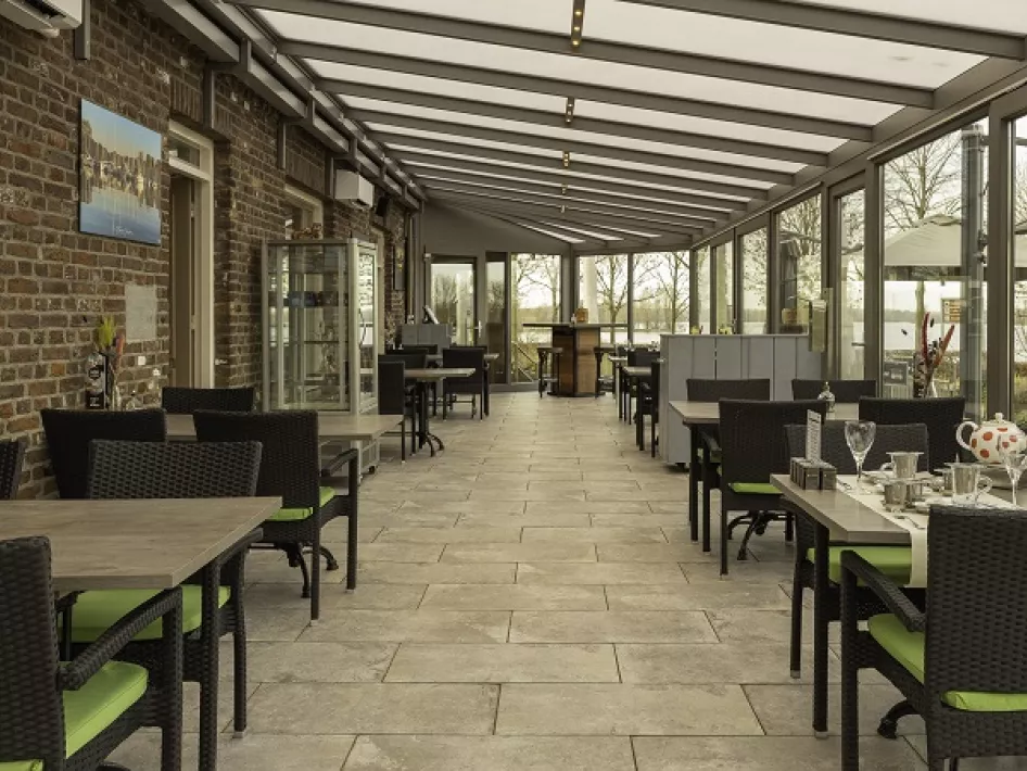 Der Restaurantbereich ist multifunktional, da die Trennwände beweglich sind. Auf diese Weise können wir einen großen offenen Raum schaffen, wodurch der Raum ideal als Partyraum für eine größere Gruppe genutzt werden kann. Wir haben auch einen hellen, geräumigen Wintergarten, der im Erdgeschoss erreichbar ist. Im Winter ist dieser Raum beheizt, so dass es angenehm ist, während des Mittag- und Abendessens bei Raumtemperatur zu bleiben. Während der Sommertage öffnen wir alle Wände, damit Sie draußen sitzen und sozusagen die Terrasse vergrößern können.