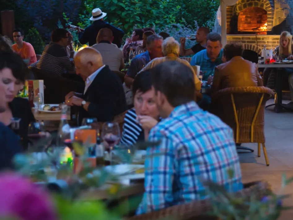 Het terras van Restaurant Diverso ligt achter het authentieke pand. Door de monumentale bomen en de idyllische sfeer kun je heerlijk genieten en lekker wegdromen. Het team zorgt voor lekker eten en drinken en niet te vergeten een fijne service. De menukaart is uitgebreid en heeft veel invloeden van Italië. Er zijn veel mogelijkheden op deze mooie plek: lunch, diner, formele en informele mogelijkheden voor groepen.